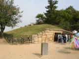 武烈王陵は、新羅の第29代国王である武烈王(ムヨル王)の墓と、後方に控える4基の古墳で構成されています。武烈王は、古代朝鮮の三国統一に尽力した大王として韓国では有名です。入口を入るととすぐ右手に太宗武烈王陵碑(国宝第25号)があります。武烈王陵の後には、4基の古墳が一直線に並んでいます。これらの古墳に眠る人物は現在でも判っていません。