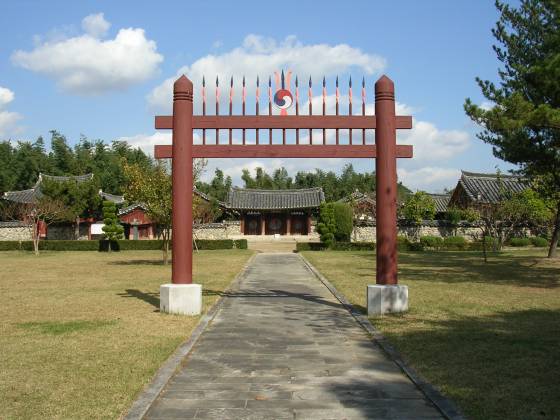 崇徳殿(スンドッチョン)は、五陵の敷地の南東部にあるります。赫居世王の祭祀を行う場所として1429年に建てられました。豊臣秀吉による分禄・慶長の役で焼失し、現存する建物は1694年に修理したものです。境内には赫居世王と崇徳殿の来歴を刻んだ碑が建っています。